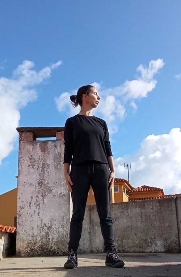 Deixa que os teus pés encontrem a sua zona de conforto. Ligeiramente afastados. Ligeiramente abertos para o lado. Talvez até, um mais que outro.